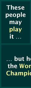 Mattel Inc. and Mattel (UK) are delighted to announce that the 2005 World SCRABBLE® Championships will be held at the Marriott Regent's Park Hotel in London, England, on November 16–20. This web site is divided into three main sections. The pre-event section, with navigational links at the left, gives background information about the players and the event. The live coverage section, with navigational links at the top, will be updated at least hourly throughout the event, with standings, scores, commentary and photos. The games section will be updated play by play starting with Round 3, and lets you try and outthink the contenders at Board 1. |